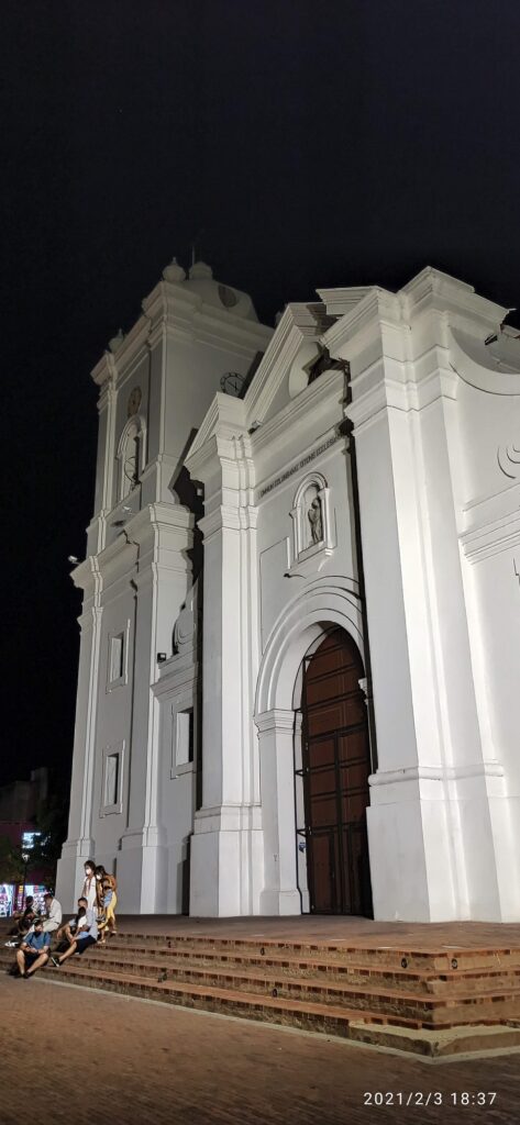 El siguiente día lo aprovechamos para ir al centro de la ciudad, llegar es muy fácil, solo hay que llegar a la Carrera 7, donde pasan los buses que vienen desde el aeropuerto, el pasaje hasta el centro cuesta 2000 pesos y el trayecto son solo unos 15 minutos. El bus los dejará a solo unas cuadras de la Catedral Basílica de Santa Marta, una hermosa iglesia totalmente blanca que data de 1760, como curiosidad, los restos de Simón Bolívar descansaron allí durante 12 años antes de ser llevados a Caracas, allí también están los restos del fundador de la ciudad, Rodrigo Bastidas.