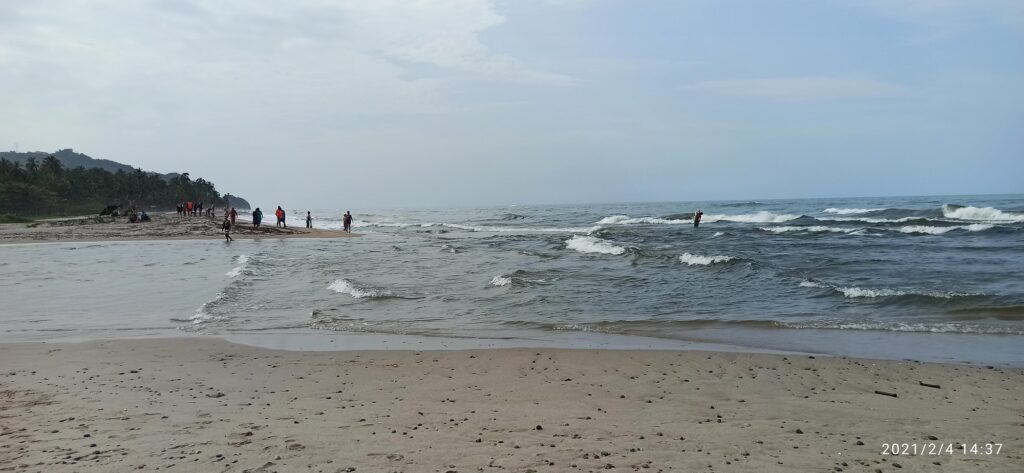 Luego del almuerzo seguimos nuestro recorrido otra hora hasta Palomino, allí la van se estacionó en un parqueadero y desde allí el conductor nos indicó que debíamos caminar unos 10 minutos hasta la playa. Hay una zona en la playa donde hay varios restaurantes y bares, estaba todo lleno. Más allá está la zona de recreación, y es sencillamente hermosa, tiene algo muy simpático y es que el río Palomino se une al mar Caribe así que hay playa sobre el río, playa sobre el mar y en la unión se forman pequeñas olas que son muy divertidas incluso para los que no sabemos nadar, también pueden ver pescadores trabajando ahí mismo al lado de los bañistas. Allí pasamos algo más de dos horas muy divertidas, nunca había visto a mis padres jugando entre las olas como lo hicimos ese día.