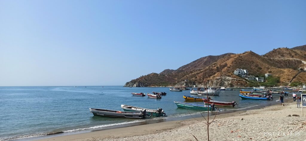 Esta zona es la antigua zona de los pescadores, es casi que un pueblo a las afueras de la ciudad, no es tan grande como el Rodadero, ni hay tanta oferta de restaurantes y bares, sin embargo tiene un estilo muy particular pues está la playa y las montañas ahí muy cerca, la playa como tal también es mucho más pequeña y hay menos vendedores. Aquí llegamos a las 2 de la tarde luego de haber almorzado en Santa Marta. Literalmente pasamos las 4 horas metidos en el agua, y es que a eso se viene a la playa. No hay mucho más que recomendar aquí, muchas personas toman barcos por 20.000 que los llevan hasta Playa Grande que es otro sector más allá, pero nosotros no lo hicimos.