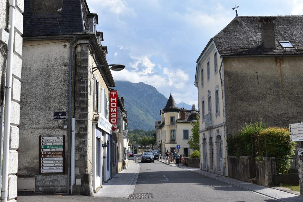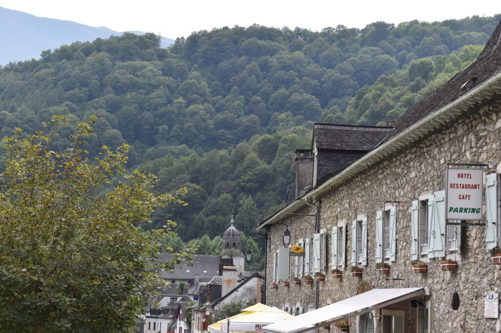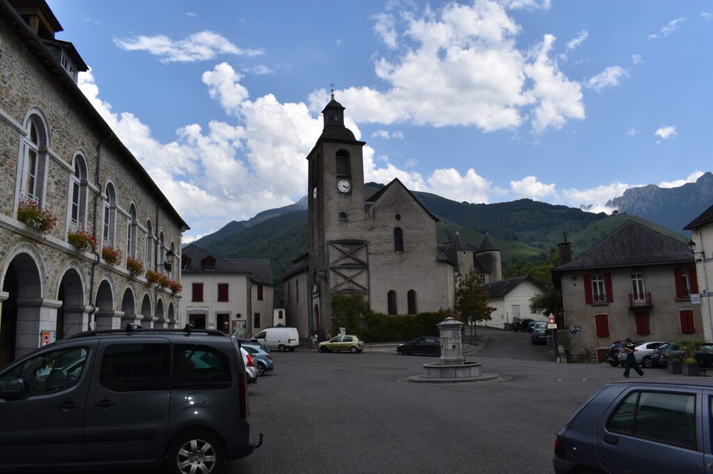 La estación de Bedous es más grande y allí sí hay máquinas para comprar pasajes, además hay un restaurante grande justo al lado de la estación. Por supuesto está la iglesia de San Miguel y algo a lo que llaman castillo que es más una casa grande con un frontón en una de sus paredes. El centro del pueblo donde está la alcaldía es simpático y está bien para sentarse un rato a contemplar las montañas de los pirineos que se ven desde cualquier punto del pueblo, las calles son estrechas y las casas parecen de otro siglo al igual que en los otros dos pueblos.