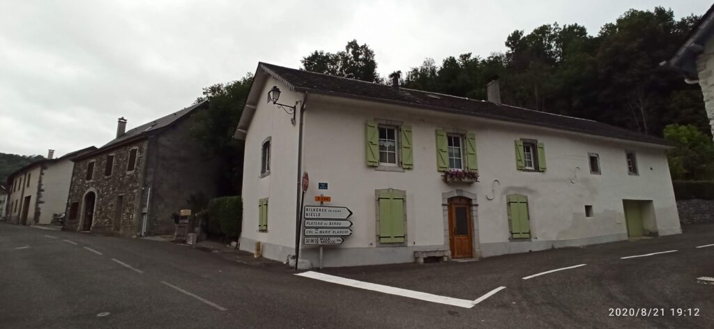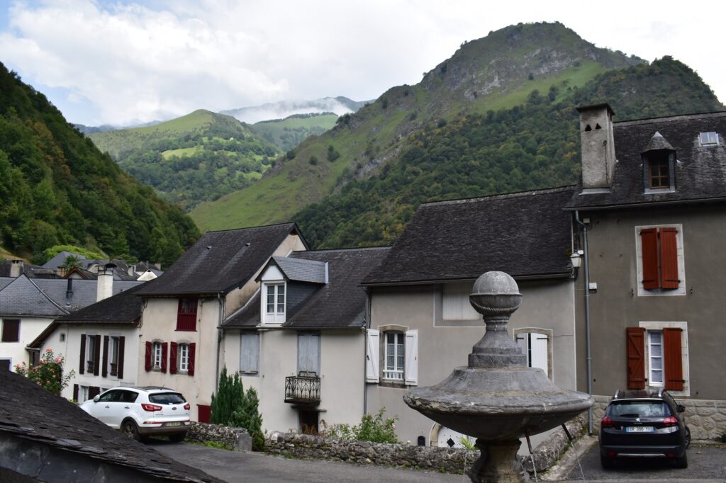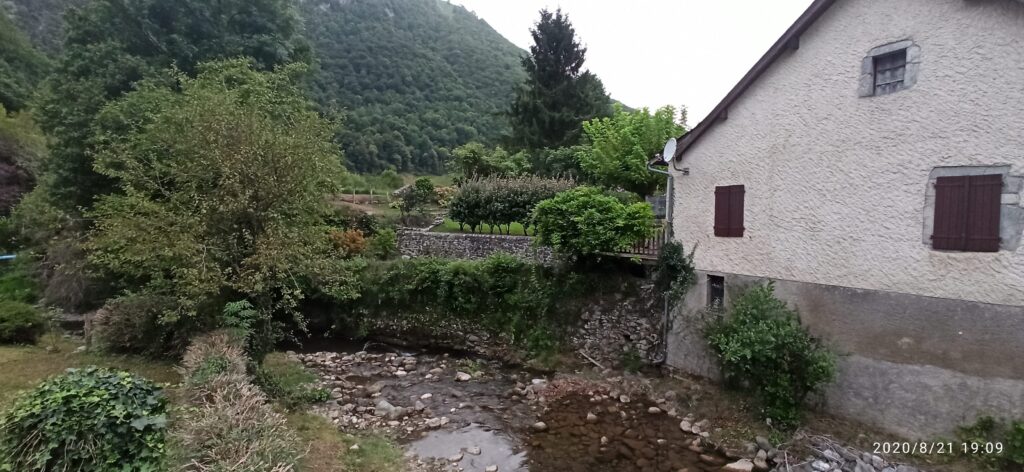 En el pueblo también hay una fuente de la que todos sacan agua potable y un frontón, una pared grande para practicar el juego de la pelota vasca que al parecer es muy popular en la zona. De todas formas el pequeño pueblo fue encantador, está situado en la falda de las montañas y sus pocas casas y la torre del campanario hacen que parezca salido de un cuento, además el río Gave D’Aspe pasa justo en frente de la carretera del pueblo, es una combinación mágica, a veces se sentía como estar perdidos y lejos de la civilización, porque para completar no hay conexión de los datos móviles así que estábamos desconectados del mundo.