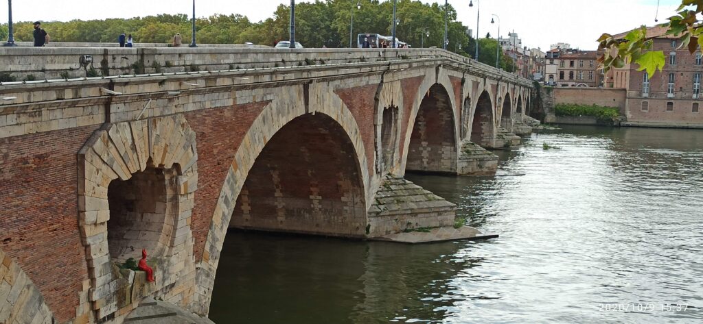 Pero si quieren es pasar la tarde lo mejor es la plaza de la Daurade, queda sobre el río Garona, cerca al puente Nuevo, un puente que atraviesa el río y que fue construido entre 1544 y 1632, lo llaman nuevo a pesar de ser el más viejo de Toulouse, pero supongo que en 1633 era realmente nuevo. Bueno cerca a este puente está la plaza que creo que era un antiguo embarcadero, el todo es que allí se reúne la gente a pasar la tarde y a beber aunque es algo que está supuestamente prohibido. Igual desde esta plaza y hasta el siguiente puente que es el de Saint Pierre construido en el siglo XIX, toda la ribera del río se llena de gente departiendo y pasando el rato, es la mejor zona para tomarse una cerveza mientras se ven los patos en el río Garona.