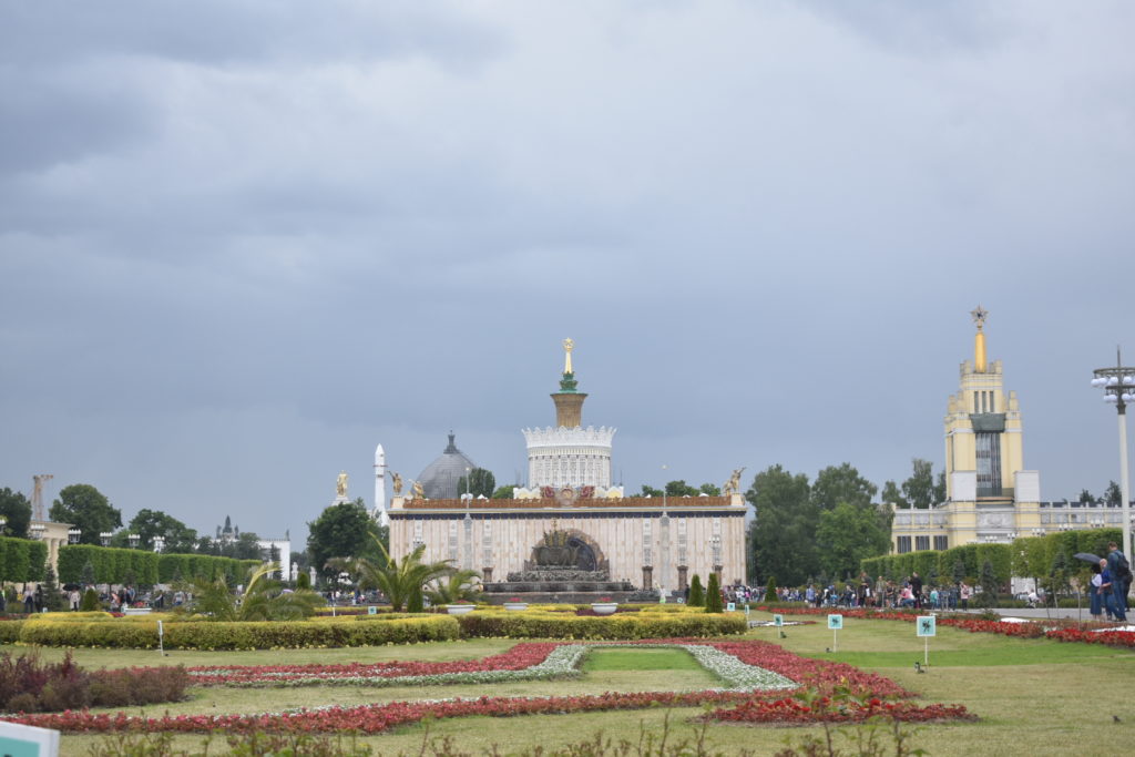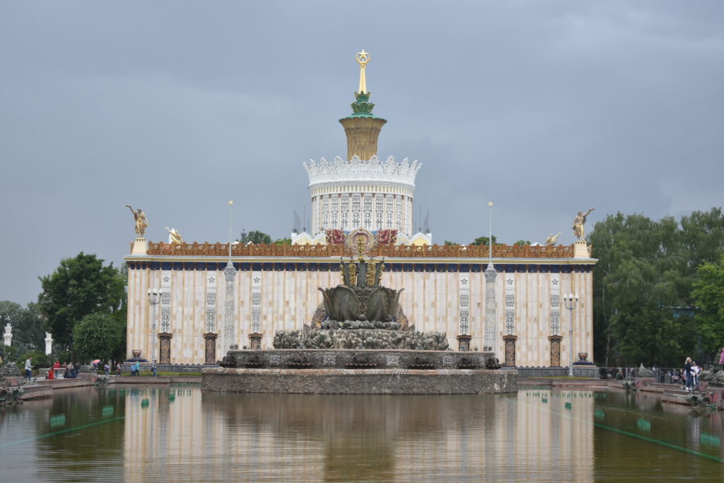 Uno de esos ejemplos de grandeza soviética está en el recinto ferial de Moscú, o VDNH, un complejo de varios edificios usados como ferias, museos, salas de exposición y parques. El complejo fue construido a principios de los años 30 para demostrar los avances agrícolas del comunismo y al parecer iba a ser temporal pero después se dieron cuenta que era bonito y lo dejaron allí.