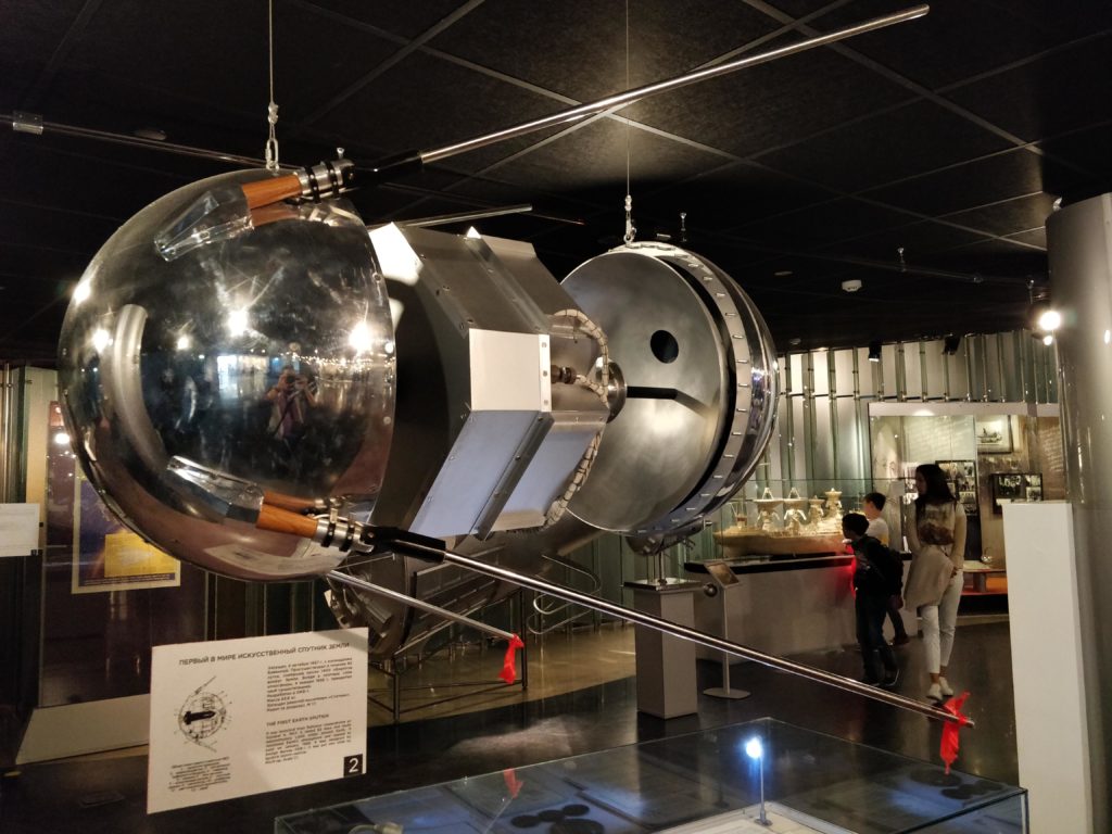 Justo al lado del VDNKh, está el museo de la cosmonáutica, un museo para conmemorar y mostrar todos los avances soviéticos en la carrera aeroespacial, y es que sí, durante la guerra fría Rusia y USA se enfrentaron cabeza a cabeza en una carrera para demostrar quién avanzaba más rápido en la conquista del espacio y sí, durante algún tiempo los soviéticos llevaron al delantera al enviar al primer hombre al espacio, Yuri Gagarin viajó en la cápsula Vostok al rededor de la tierra en 1961, también enviaron al primer ser vivo al espacio, la perra Laika viajó en el Sputnik 2 en 1957, desafortunadamente también fue el primer ser vivo en morir en orbita, y si les suena el nombre de Sputnik es porque el Sputnik I fue el primer satélite artificial en orbitar la tierra.