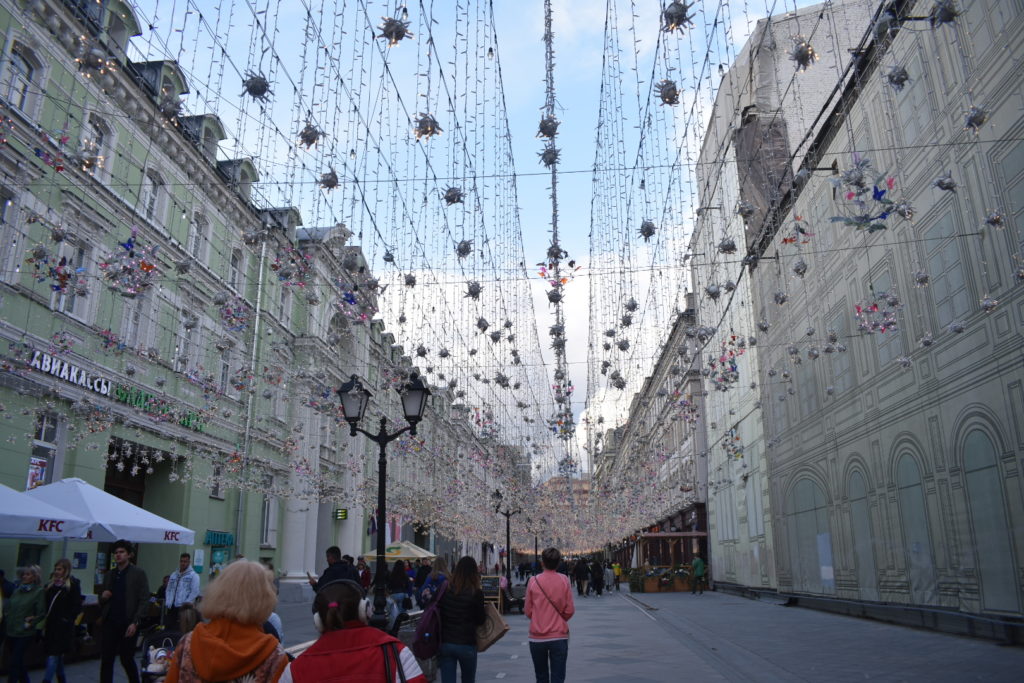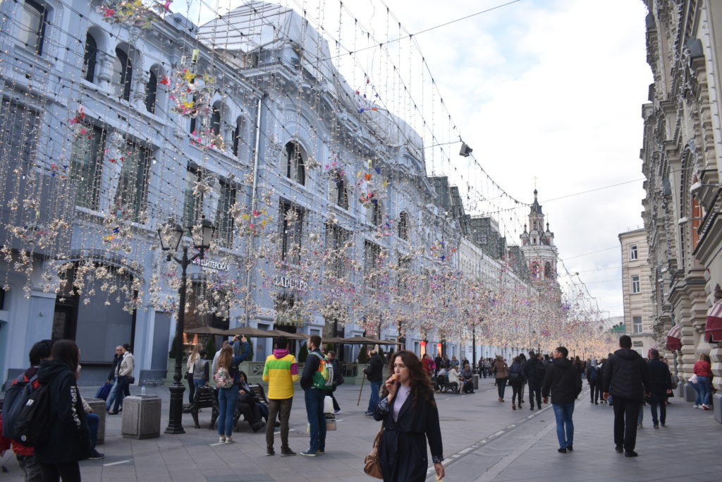Justo al lado hay un centro comercial llamado GUM que está bien para caminar un rato, comer algo y para algo muy esencial: ir al baño si lo necesitan. Muy cerca a la plaza hay una calle llamada Tverskaya, allí hay cafés, restaurantes y bares, en uno de esos bares terminamos el día tomando una cerveza con el grupo de colombianos que aguantó hasta la noche.