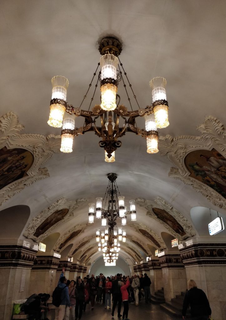 Después del paseillo por el mercado tomamos el metro hacía el centro de la ciudad, las estaciones de tren son las más lindas que he visto, son obras de arte en sí, y están situadas muy por debajo de la superficie ya que los soviéticos estaban obsesionados con la guerra y las construyeron para que sirvieran de refugios antibombas, por dentro tienen estatuas de la era soviética, las paredes están talladas o tienen pinturas, todas son elegantes y agradables, lo mejor de todo es el sistema de metro, todo está bien señalizado y los trenes viejos pero en buen estado pasan cada DOS minutos sin importar la línea o si van desde o para el centro, es una locura, además todo gratis gracias al pase.