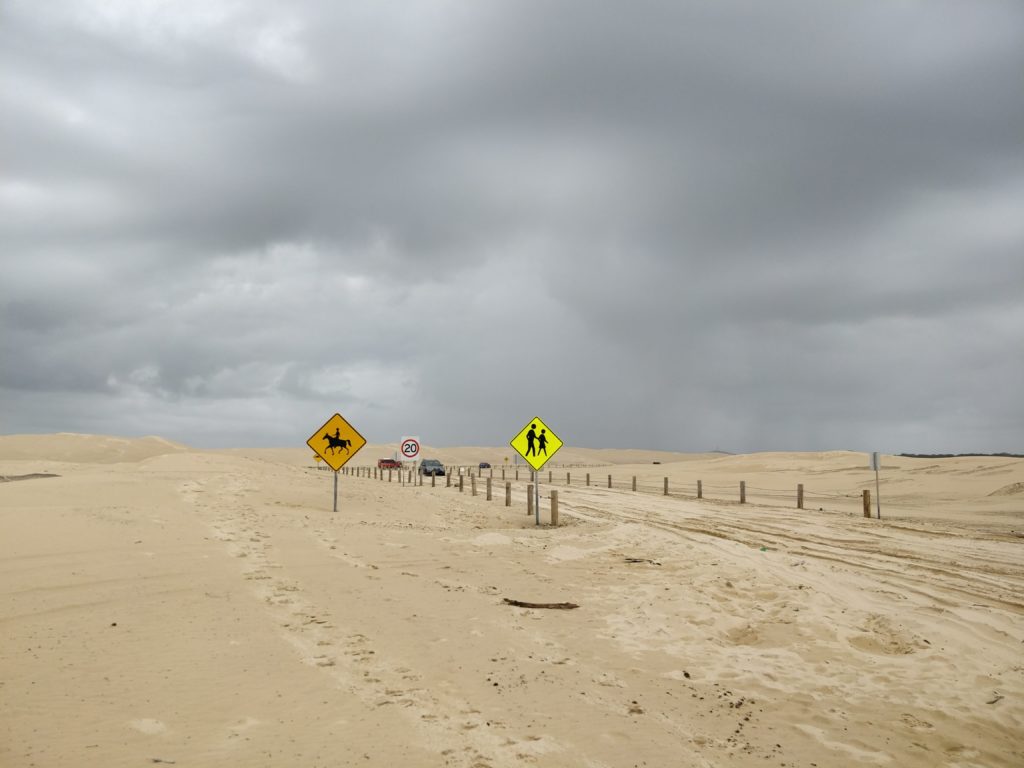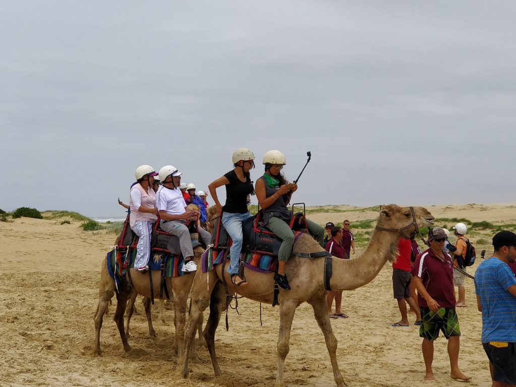 La playa como tal es peculiar, ya que es un desierto junto al mar, un terreno donde lo único que se ve en el horizonte es arena y justo al lado la costa, allí pueden alquilar buggies para andar por la arena y también pueden acercarse a conocer a los protagonistas del blog: Camellos. Pueden incluso dar un paseo montados en estos simpáticos animales, una vuelta de unos 20 minutos vale alrededor de AUD 30.