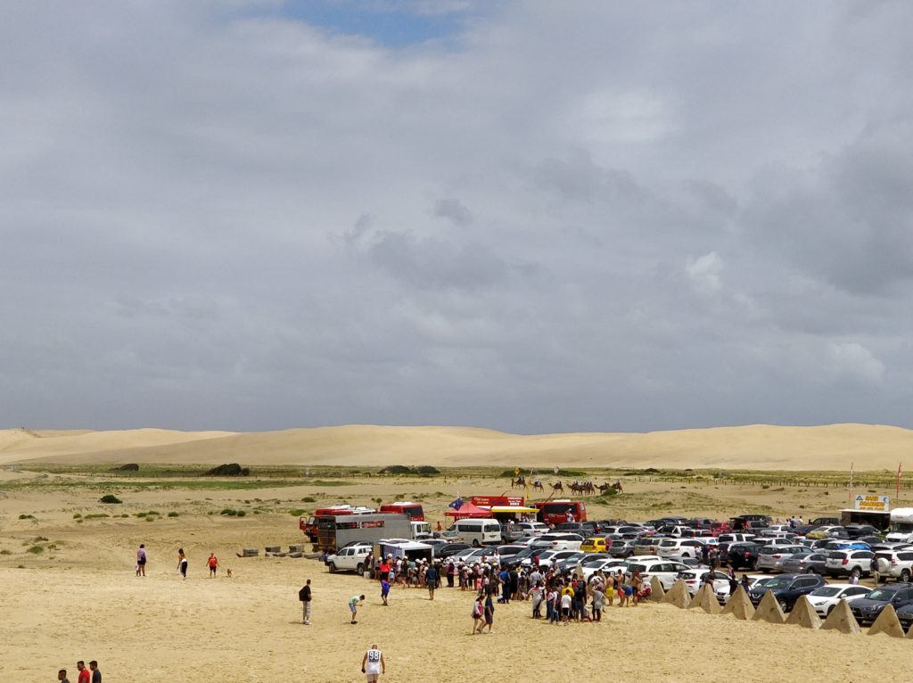 En fin, cerca a Sydney hay una pequeña ciudad llamada Newcastle y allí hay desierto y un desierto que se respete tiene camellos, así que el 26 de diciembre (Boxing day) nos fuimos en el carro del amigo de la amiga de Meli hacia Newcastle con el único objetivo de conocer los camellos. El recorrido en carro es de unas 2 horas, aunque también puede llegar en tren desde la Estación Central hasta Newcastle y de ahí pasan a un bus o tren ligero que los lleva a las playas, según la página de transporte de New South Wales el pasaje por cada trayecto vale unos 9 AUD y tarda 3 horas).